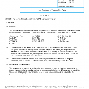 This specification covers the engineering requirements for heat treatment by part fabricators (users) or their vendors or subcontractors, of parts (See 1.1.2) made from the following titanium alloys: