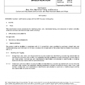 This specification covers procedures for identifying bars, wire, mechanical tubing, and extrusions of carbon and alloy steels and corrosion and heat-resistant steels and alloys.