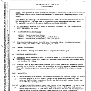 This specification covers spooling and packaging of bare welding wire to ensure cleanliness and freedom from corrosion, spool sizes and weights of spooled wire, and package weights of cut lengths.