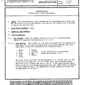 This specification covers procedures for identification of bare wire for welding by a color code system or by tabs for cut lengths and by marking of spools for spooled wire.