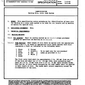 This specification covers procedures for identification of bare wire for welding by a color code system or by tabs for cut lengths and by marking of spools for spooled wire.