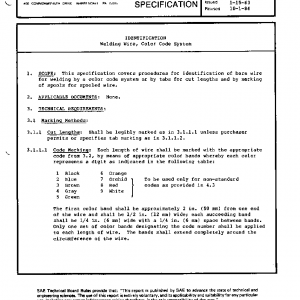 This specification covers procedures for identification of bare wire for welding by a color code system or by tabs for cut lengths and by marking of spools for spooled wire.