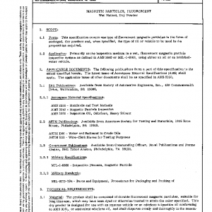 This specification covers one type of fluorescent magnetic particles in the form of packaged, dry powders and, when specified, the type of oil or vehicle to be used in the proportions required.