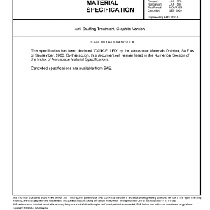 This specification covers the engineering requirements for producing a graphite-varnish coating on parts. Primarily for dry lubricant applications up to 350F degrees (175C degrees) and anti-scuffing or anti-seize applications up to 900F degrees (480C degrees). This specification has been declared “Noncurrent” by the Aerospace Materials Division, SAE, as of April 31, 1987. It is recommended that this specification not be specified for new designs.
