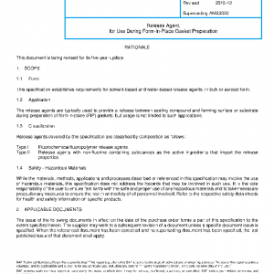 This specification establishes requirements for solvent-based and water-based release agents, in bulk or aerosol form.
