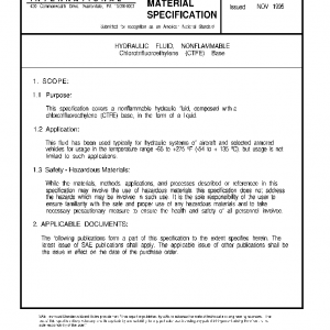 This specification covers a nonflammable hydraulic fluid, composed with a chlorotrifluoroethylene (CTFE) base, in the form of a liquid.
