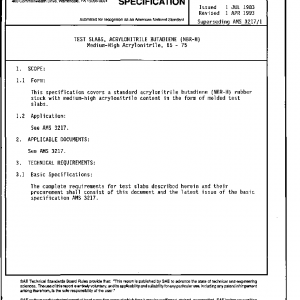 This specification covers a standard acrylonitrile butadiene (NBR-H) rubber stock with medium-high acrylonitrile content in the form of molded test slabs.
