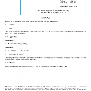 This specification covers a standard acrylonitrile butadiene (NBR-H) rubber stock with medium-high acrylonitrile content in the form of molded test slabs.