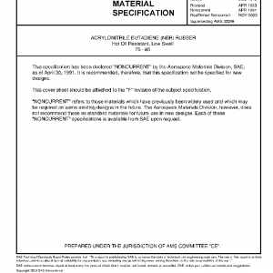 ACRYLONITRILE BUTADIENE (NBR) RUBBER Hot Oil Resistant, Low Swell 75 – 85(NONCURRENT Apr 1991)