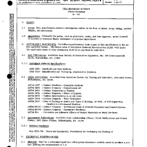 This specification covers a chloroprene rubber in the form of sheet, strip, tubing, molded shapes, and extrusions.