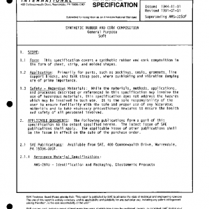 This specification covers a synthetic rubber and cork composition in the form of sheet, strip, and molded shapes.