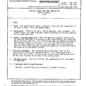 This specification covers a synthetic rubber and cork composition in the form of sheet, strip, and molded shapes.