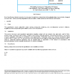 This specification covers polysulfide rubber sealing compounds containing only non-chromated corrosion inhibitors, supplied as a two-component system which cures at room temperature.