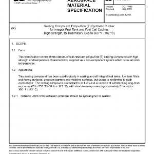 This specification covers three classes of fuel-resistant polysulfide (T) sealing compound with high strength and temperature characteristics, supplied as a two-component system which cures at room temperatures.