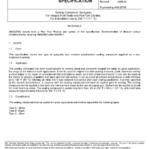 Sealing Compound, Sprayable For Integral Fuel Tanks and Fuel Cell Cavities, For Intermittent Use to 350 °F (177 °C)