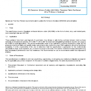 This specification covers a fiberglass reinforced silicone rubber (MQ/VMQ) in the form of sheet, strip, and molded parts, color coded light blue per ARP1527.