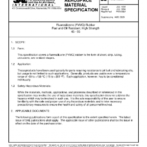 This specification covers a fluorosilicone (FVMQ) rubber in the form of sheet, strip, tubing, extrusions, and molded shapes.