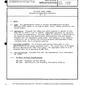 This specification covers an extreme-low-temperature-resistant silicone (PVMQ) rubber in the form of sheet, strip, tubing, extrusions, and molded shapes.