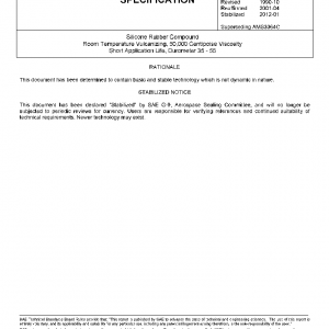 Silicone Rubber Compound Room Temperature Vulcanizing, 50,000 Centipoise Viscosity Short Application Life, Durometer 35 – 55(STABILIZED Jan 2012)