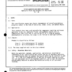 This specification covers two classes (durometers) of tetrafluoroethylene/propylene rubber in the form of extrusions, sheet, strip, and molded shapes.