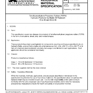 This specification covers two classes (durometers) of tetrafluoroethylene/ propylene rubber (FEPM) in the form of extrusions, sheet, strip, and molded shapes.
