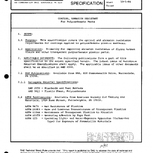 This specification covers the optical and abrasion resistance requirements for coatings applied to polycarbonate plastic surfaces.