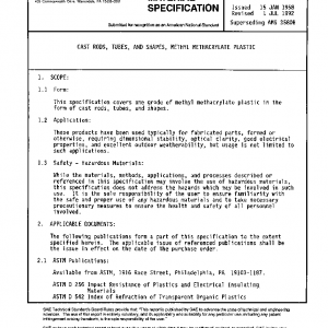 This specification covers one grade of methyl methacrylate plastic in the form of cast rods, tubes, and shapes.