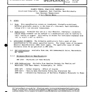 This specification covers an irradiated, thermally-stabilized, modified polyolefin plastic in the form of a thin-wall, heat-shrinkable tubing with a low recovery temperature.