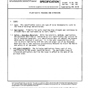 This specification covers one type of nylon thermoplastic resin in the form of moldings and extrusions.