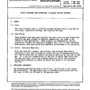 This specification covers a cellulose acetate butyrate resin in the form of extrusions, compression moldings, and injection moldings.
