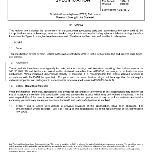 This specification covers a virgin, unfilled polytetrafluoroethylene (PTFE) in the form of extruded and sintered rods, tubes, and profiles.
