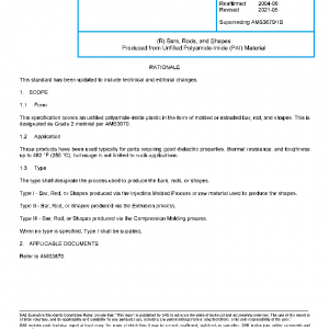 This specification covers an unfilled polyamide-imide plastic in the form of molded or extruded bar, rod, and shapes. This is designated as Grade 2 material per AMS3670.