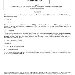This specification covers a polytetrafluoroethylene (PTFE) resin filled with 10% mineral and 2.5% molybdenum disulfide in the form of extruded or molded rods or tubes which are sintered after molding or, in the case of extrusions, sintered during the extrusion process.