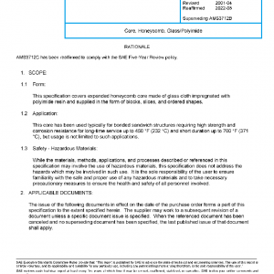 This specification covers expanded honeycomb core made of glass cloth impregnated with polyimide resin and supplied in the form of blocks, slices, and ordered shapes.