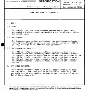 This specification covers expanded honeycomb core made of glass fabric impregnated with phenolic resin and supplied in the form of blocks, slices, and ordered shapes.