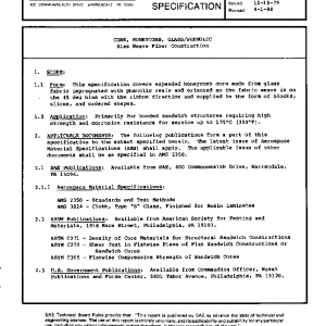 This specification covers expanded honeycomb core made from glass fabric impregnated with phenolic resin and oriented so the fabric weave is on the 45 deg bias with the ribbon direction and supplied in the form of blocks, slices, and ordered shapes.