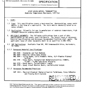 EPOXY RESIN MATRIX, THERMOSETTING Moderate Temperature Resistant, Unfilled