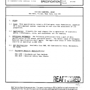 This specification covers a filled epoxy resin formulation, supplied as a one-component system, requiring an oven cure for attainment of its properties.