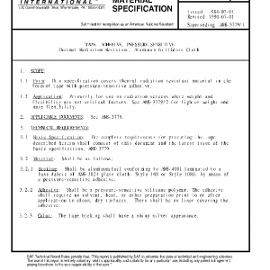 This specification covers thermal radiation resistant material in the form of tape with pressure-sensitive adhesive.