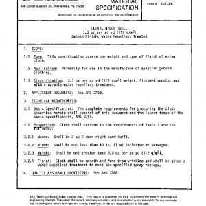 CLOTH, NYLON TWILL 3.3 oz per sq yd (112 g/m2) Smooth Finish, Water Repellent Treated