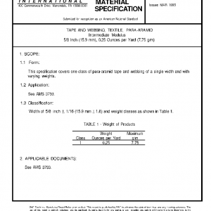 TAPE AND WEBBING, TEXTILE, PARA-ARAMID Intermediate Modulus 5/8 Inch (15.9 mm), 0.25 Ounces per Yard (7.75 g/m)