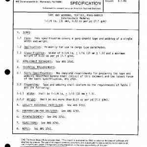 This specification covers a para-aramid tape and webbing of a single width and weight.