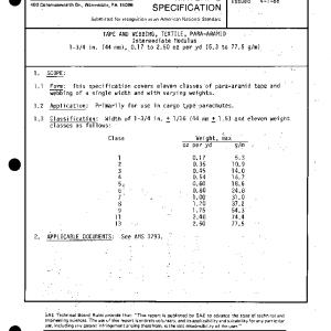 This specification covers eleven classes of para-aramid tape and webbing of a single width and with varying weights.