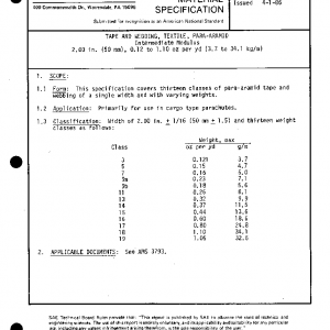 This specification covers thirteen classes of para-aramid tape and webbing of a single width and with varying weights.