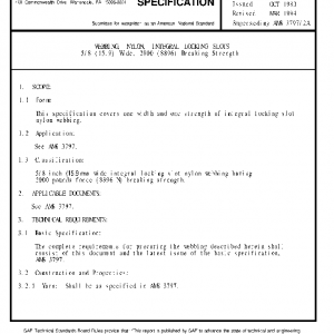 This specification covers one width and one strength of integral locking slot nylon webbing.