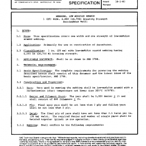 This specification covers one width and one strength of low-modulus aramid webbing.