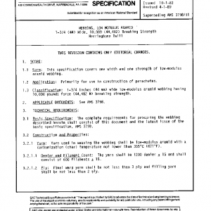 This specification covers one width and one strength of low-modulus aramid webbing.