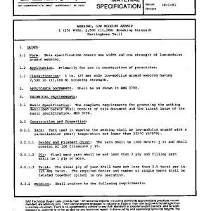This specification covers one width and one strength of low-modulus aramid webbing.
