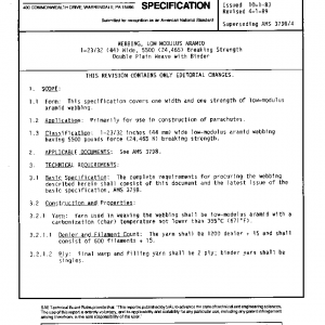 This specification covers one width and one strength of low-modulus aramid webbing.