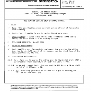 This specification covers one width and one strength of low-modulus aramid webbing.